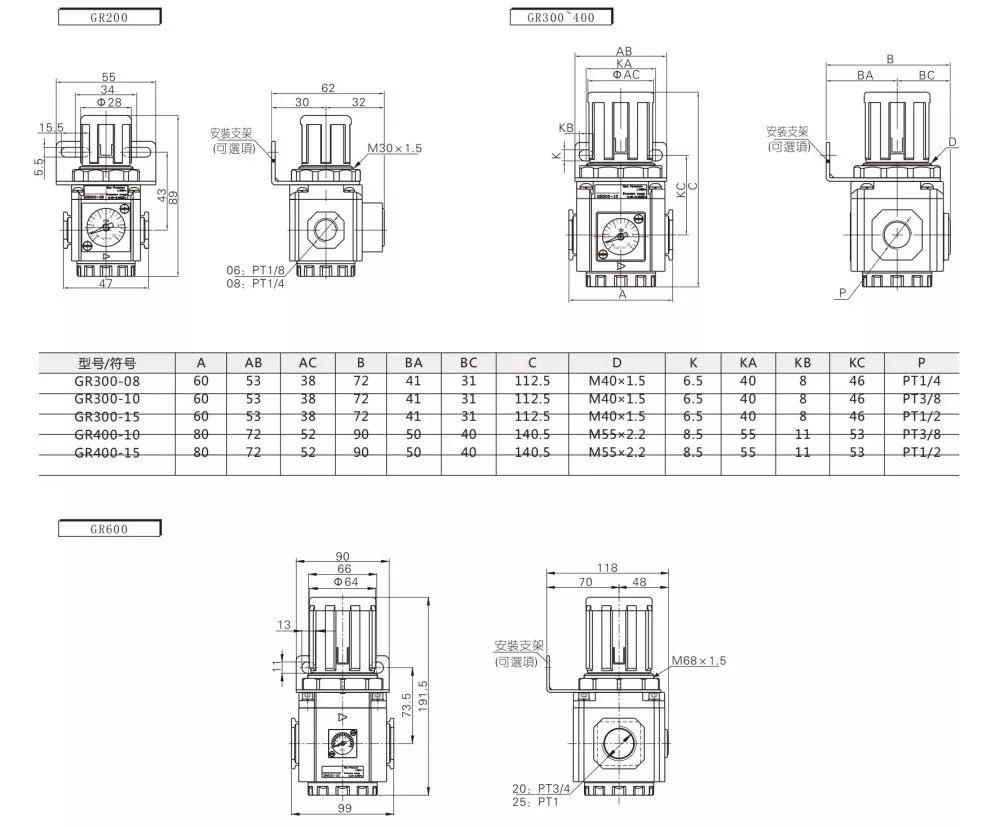 Airtac Type GR GR Produk Pengatur Tekanan Ciri -ciri: