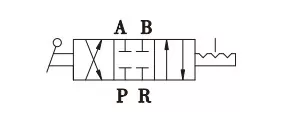 Apabila beralih ke gear 01, pelabuhan ekzos melepaskan udara, ventilasi pelabuhan B, dan silinder menarik balik.
