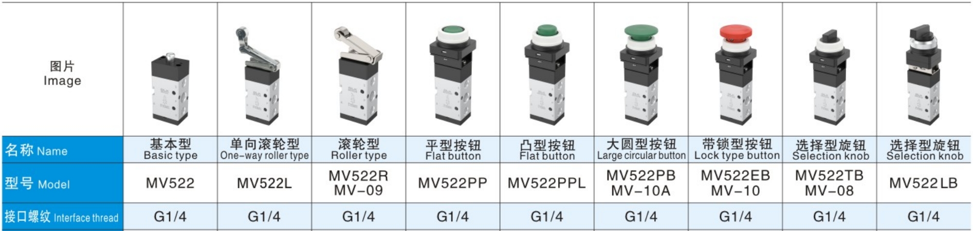 MV522 Siri Kawalan Butang Mekanikal Valve 5 Way Parameter Umum