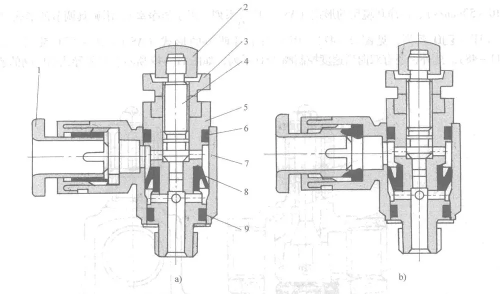 Fungsi injap kawalan aliran SL dicapai melalui cincin pengedap sehala. Foto (a) menunjukkan pendikit ekzos, dan foto (b) menunjukkan pendikit masuk -perbezaan hanya datang dari arah pemasangan cincin pengedap.