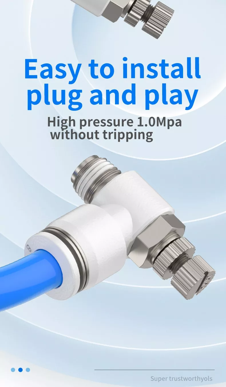 Pengawal kelajuan adalah komponen pneumatik biasa yang digunakan untuk menyesuaikan kelajuan lanjutan dan penarikan balik penggerak. Injap pendikit pada dasarnya adalah komponen penyesuaian aliran yang mengawal kelajuan silinder, tetapi kedudukan pemasangan mereka, arahan pendikit, dan reka bentuk badan berbeza. Menurut kaedah kawalan, mereka boleh dibahagikan kepada jenis throttling ekzos dan jenis throttling.