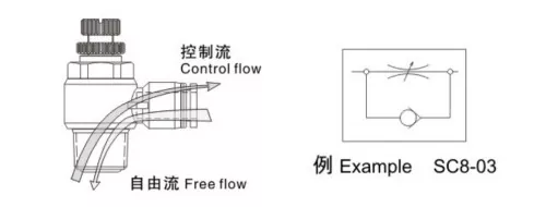 Dari simbol-simbol fungsional, kita dapat melihat bahawa kedua-dua injap kawalan ekzos dan aliran masuk adalah injap pendikit satu arah, mengawal aliran hanya dalam satu arah sambil membenarkan aliran udara terbalik secara bebas. Untuk silinder bertindak dua kali, injap pendikit ekzos lebih disukai untuk meningkatkan kestabilan pergerakan silinder. Untuk silinder bertindak tunggal, yang biasanya menggunakan musim bunga untuk lanjutan atau penarikan balik apabila tiada bekalan udara, gas mesti mengatasi daya musim bunga semasa operasi, jadi injap pendikit masuk sesuai untuk kawalan kelajuan.