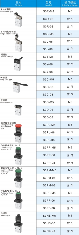 Selamat datang ke Valve Kawalan Button Butle atau disesuaikan S3 Siri 3 cara dari kilang kami pada bila -bila masa. Kami akan memberi anda harga diskaun kilang untuk produk kami. OLK Pneumatic adalah pengeluar dan pembekal injap mekanikal siri S3 di China.