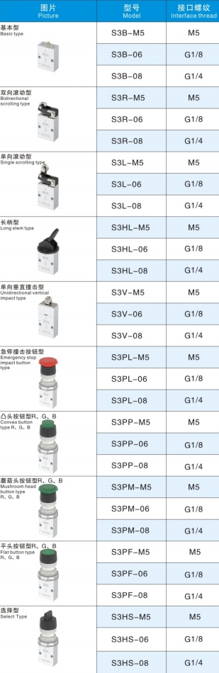 2. S3PF, S3PM, S3PP, S3PL, S3Y, S3HS, S3C, S3D dikendalikan secara manual, yang menampilkan pelbagai bentuk struktur kepala kawalan untuk kegunaan mudah dalam keadaan yang berbeza.