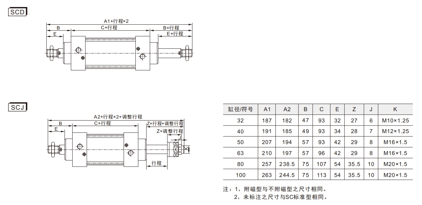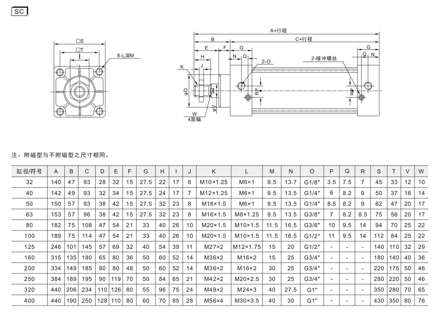 4. Berbanding dengan silinder standard IS015552, silinder siri SC mempunyai panjang yang lebih kecil untuk diameter silinder yang sama.