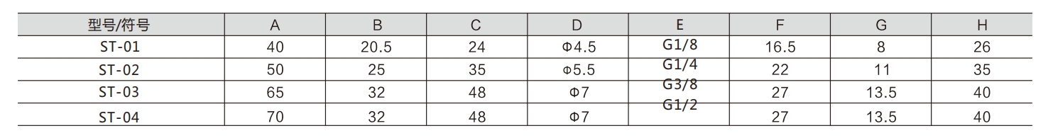 Jika kelengkapan tiub udara tidak dipilih dengan betul, menyebabkan pengambilan udara atau ekzos di pelabuhan menjadi sangat kecil, teras injap mungkin tidak beralih sepenuhnya, yang membawa kepada semua pelabuhan yang disambungkan. Ini mesti dicegah. ST-01: G1/8; ST-02: G1/4; ST-03: G3/8; ST-04: G1/2