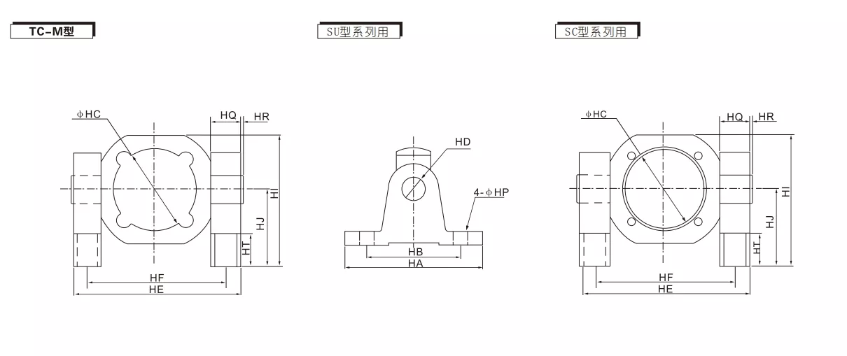 Berbanding dengan pendakap TCTC-M, pendakap pemasangan TC-M mempunyai dua pangkalan pemasangan tambahan, dan struktur pendakap TC-M lebih mantap, sesuai untuk aplikasi dengan kekerapan operasi silinder tinggi atau daya penggerak yang tinggi.